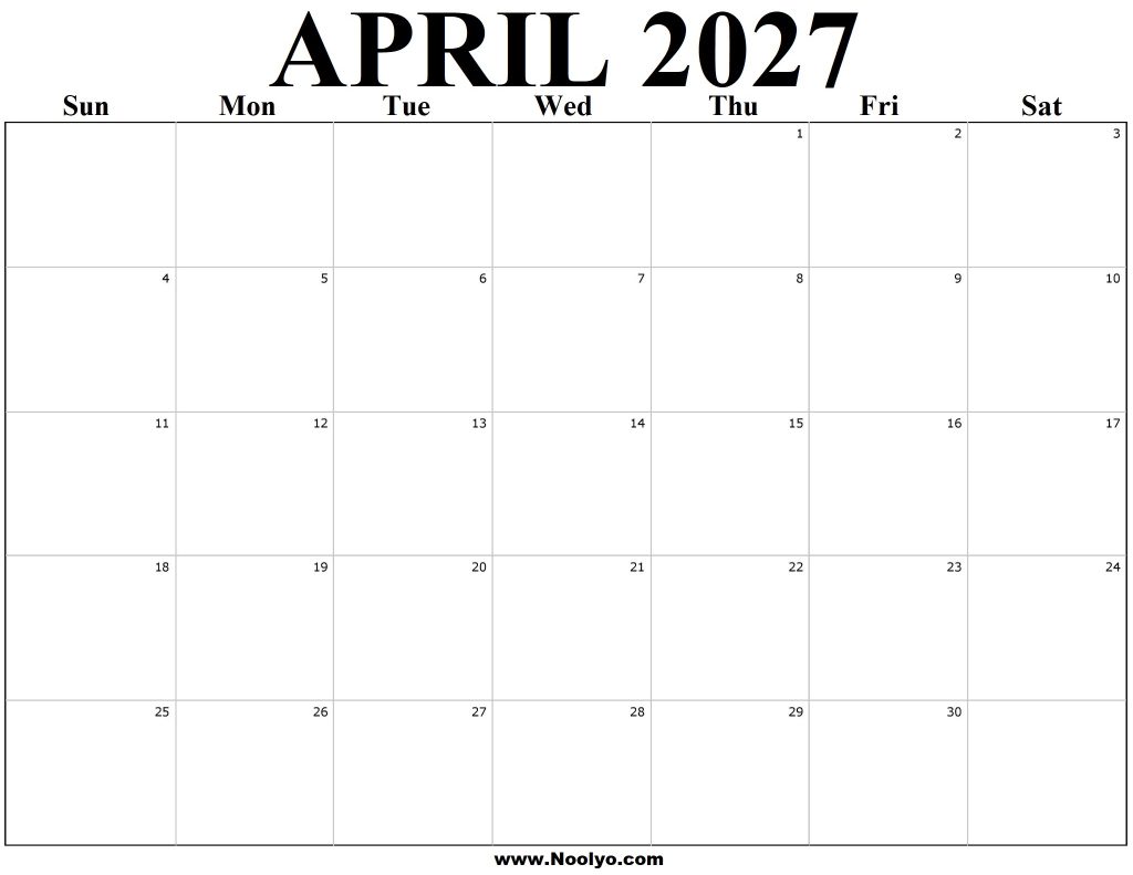 April Free Printable Monthly 2027 Calendar Black and White