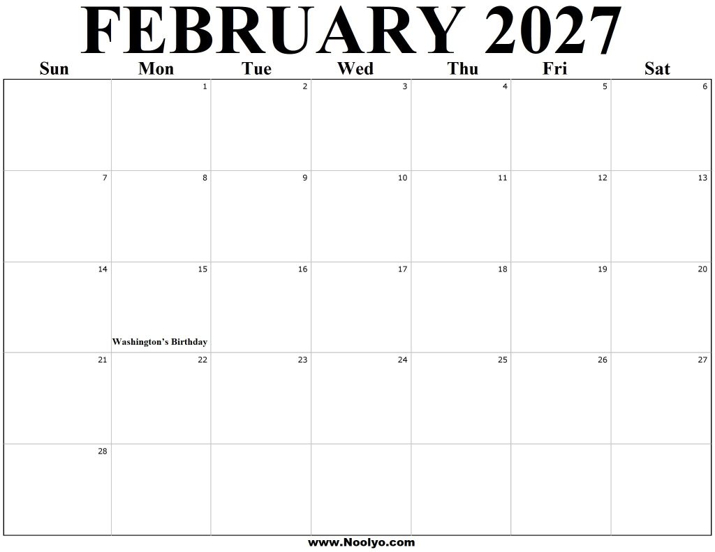 Free Download February 2027 US πΊπΈ Calendar with Holidays,